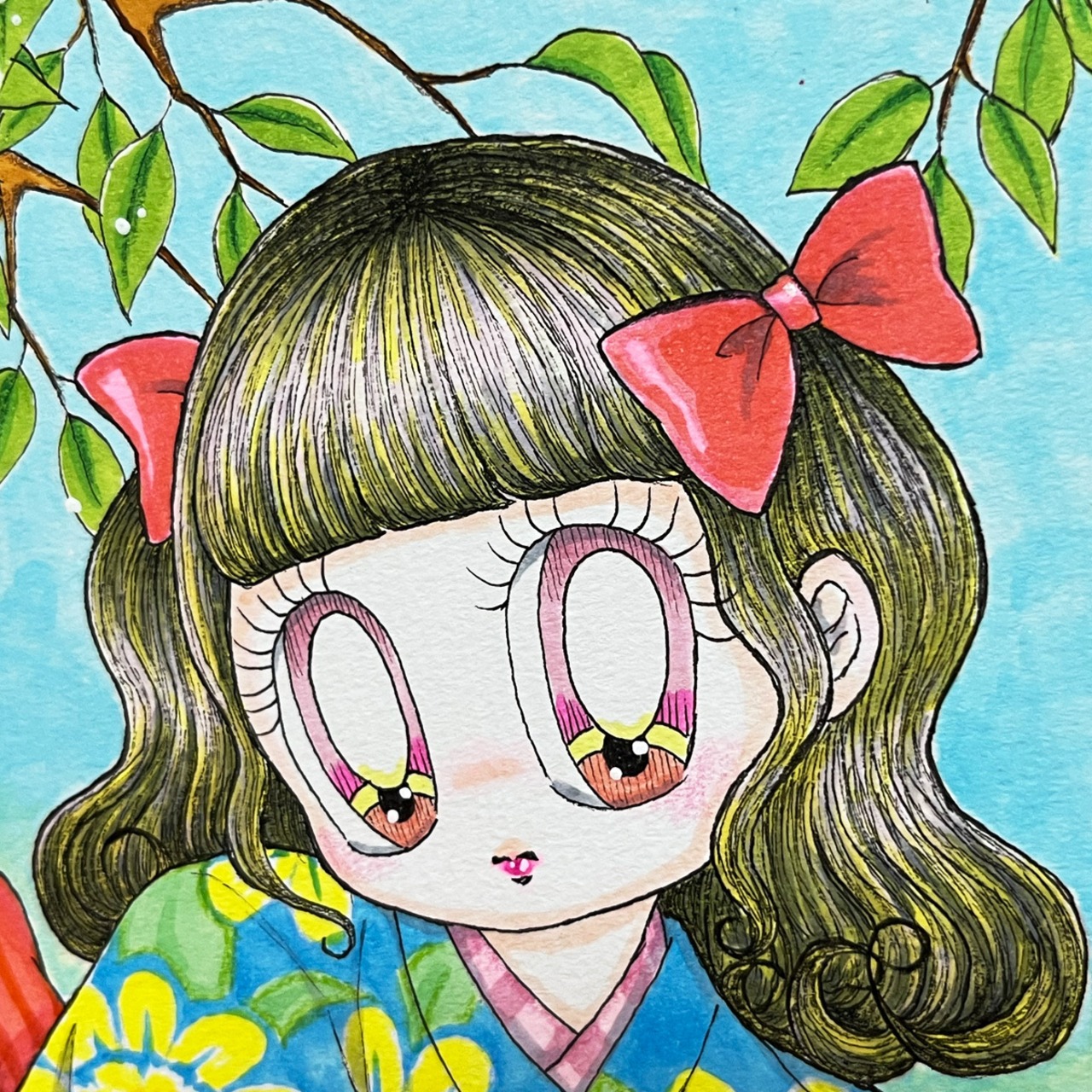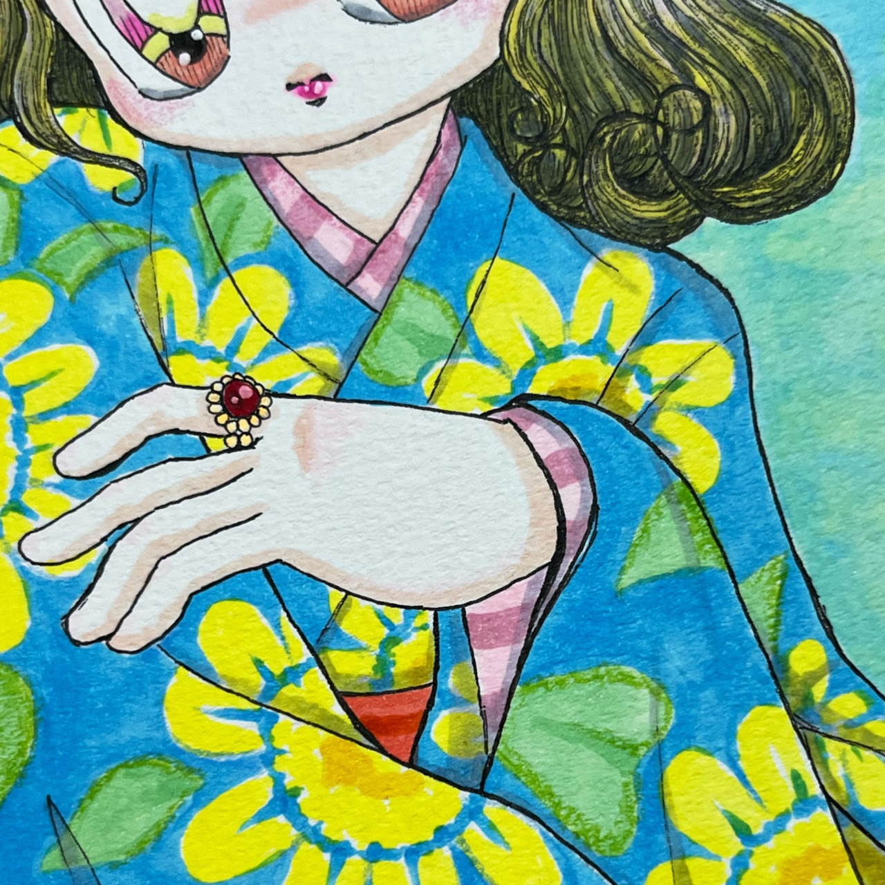 画材:紙、アルコールインク、油性ペン、色鉛筆