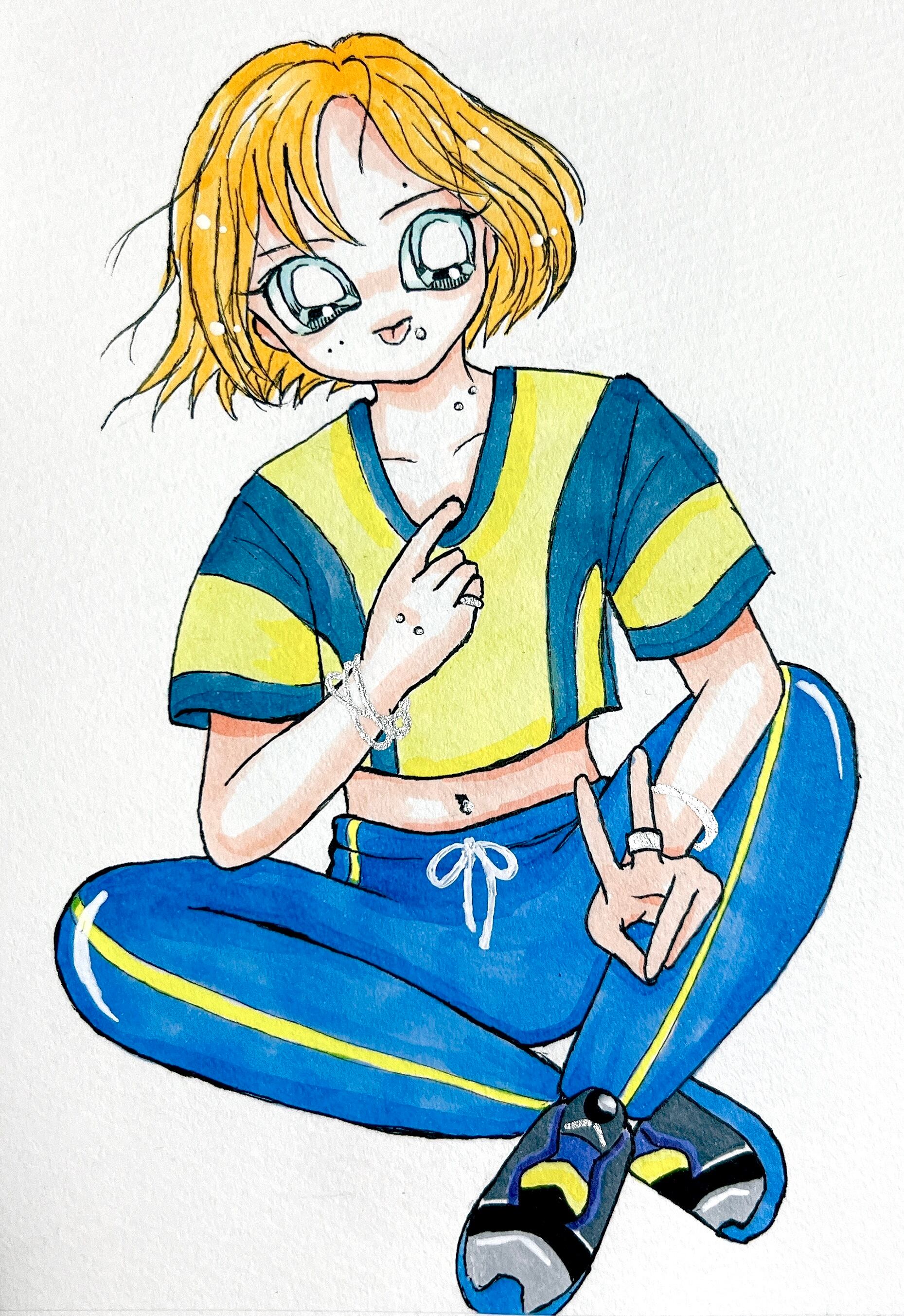 スポーティな格好が好きで、元気印の蛍光イエローがポイント。やんちゃだけど妹想い。近所の子どもたちと一緒にスケボーを練習してる。