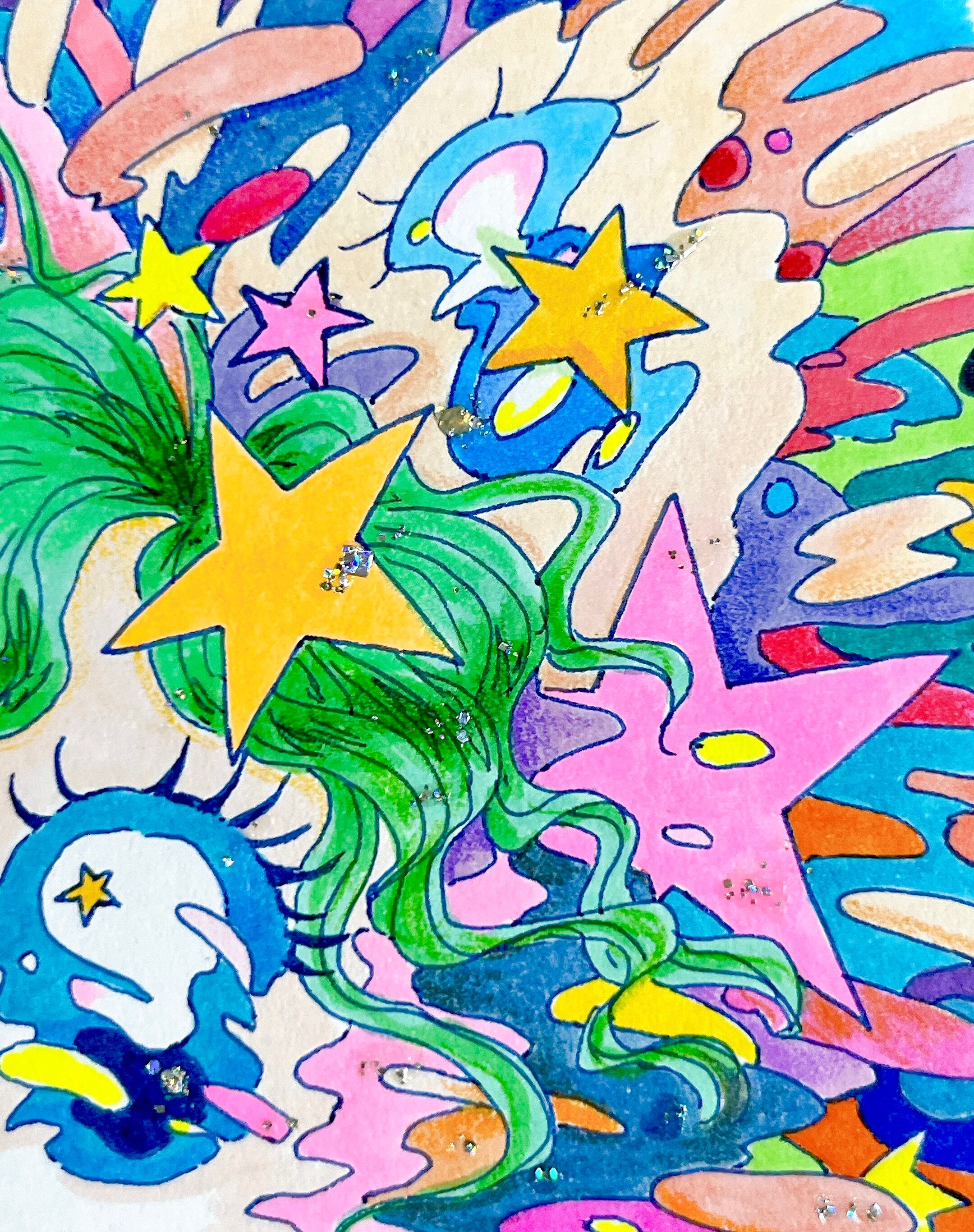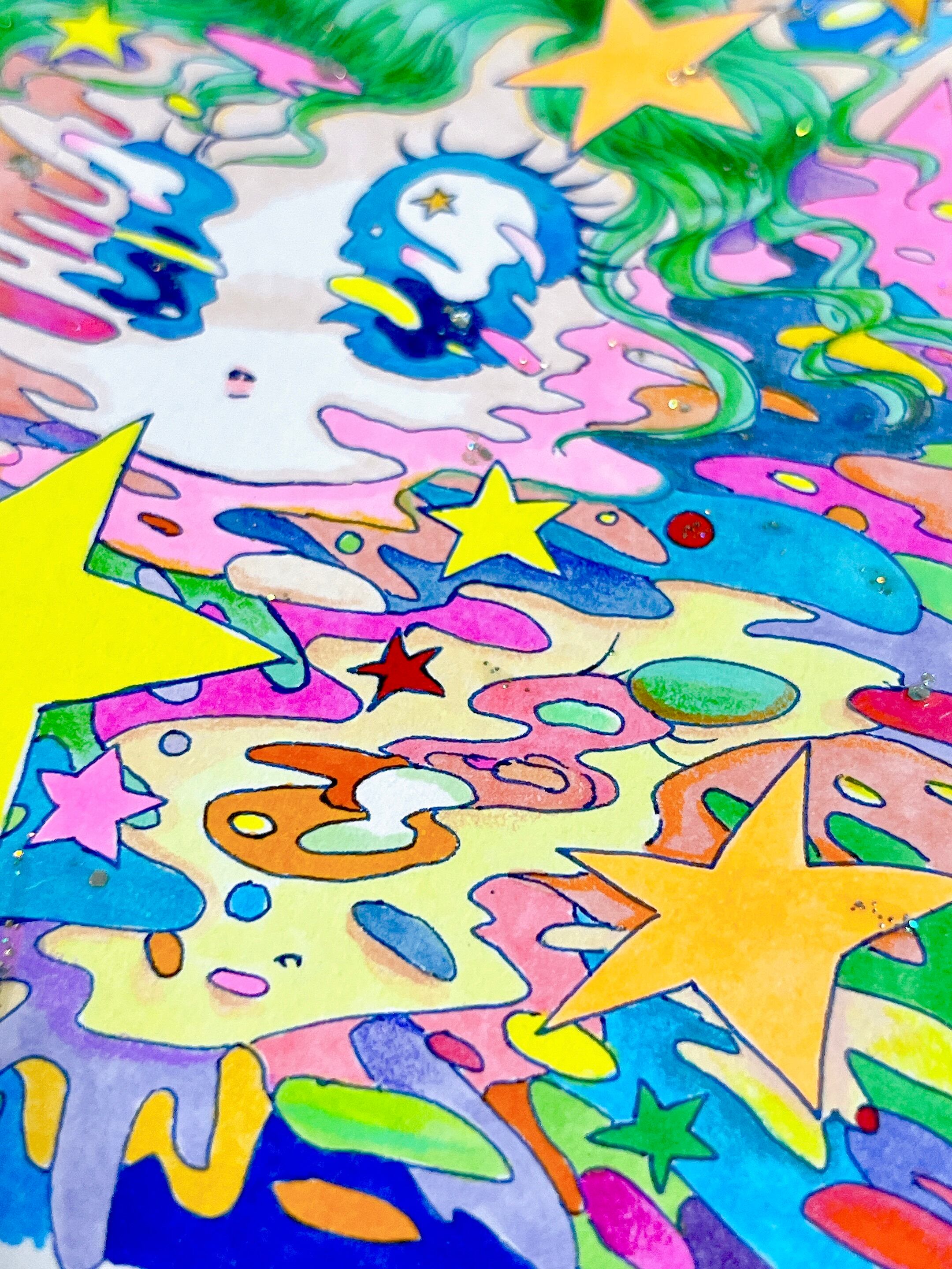 画材:アルコールインク、油性ペン、油彩鉛筆、スパンコール